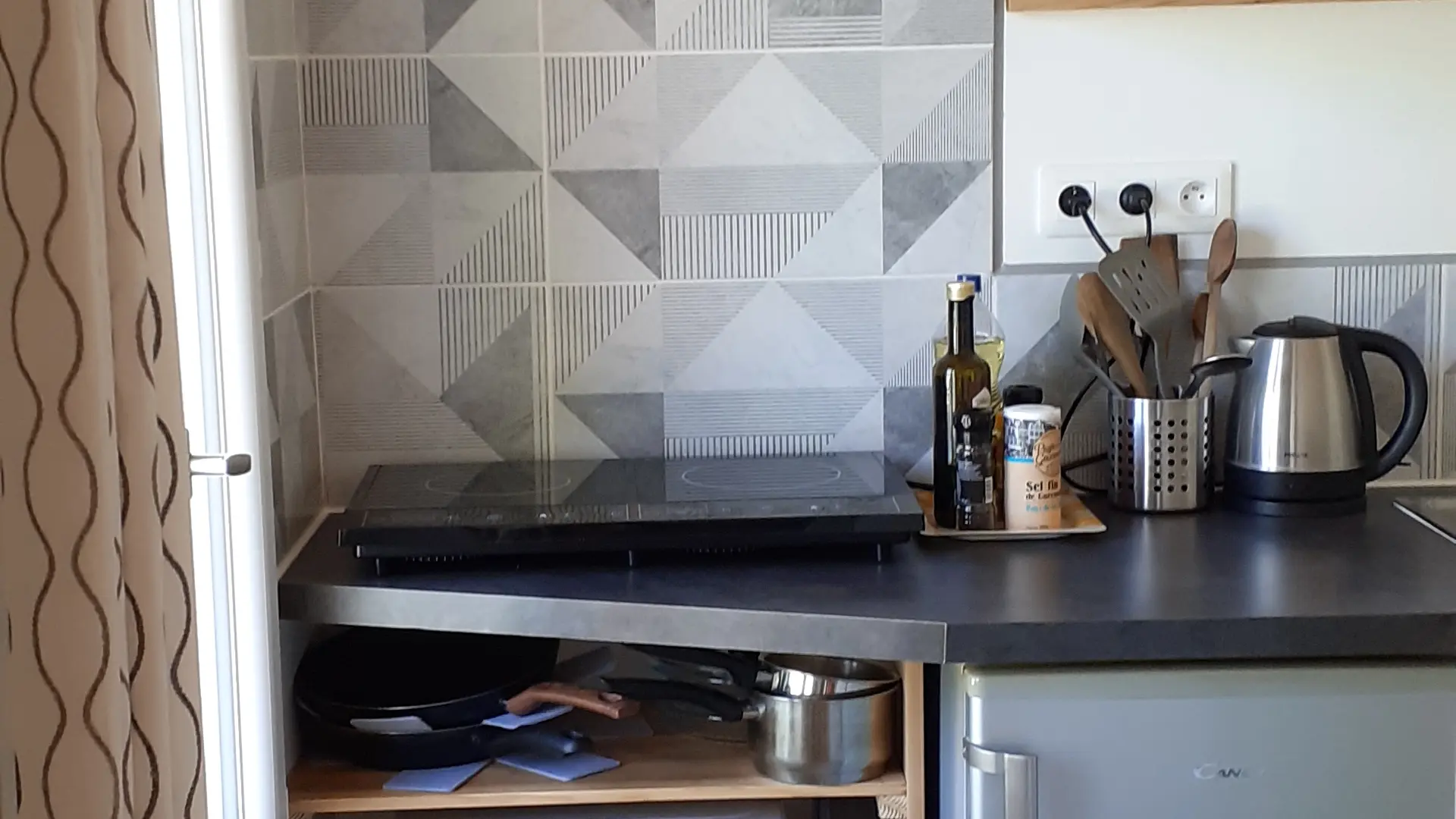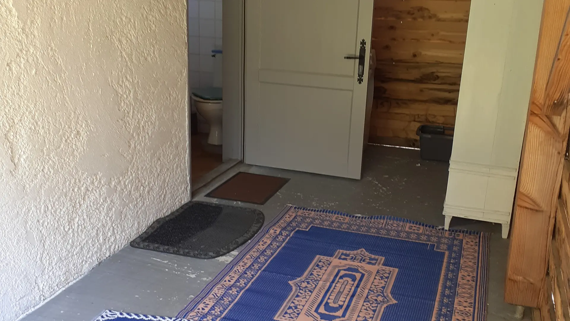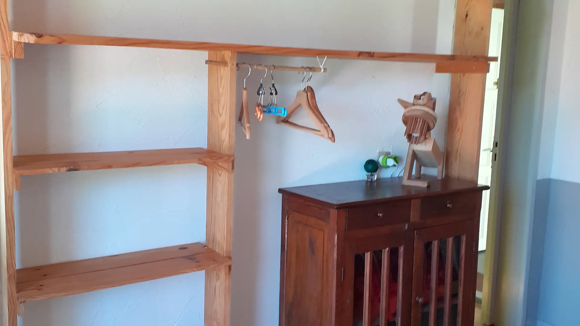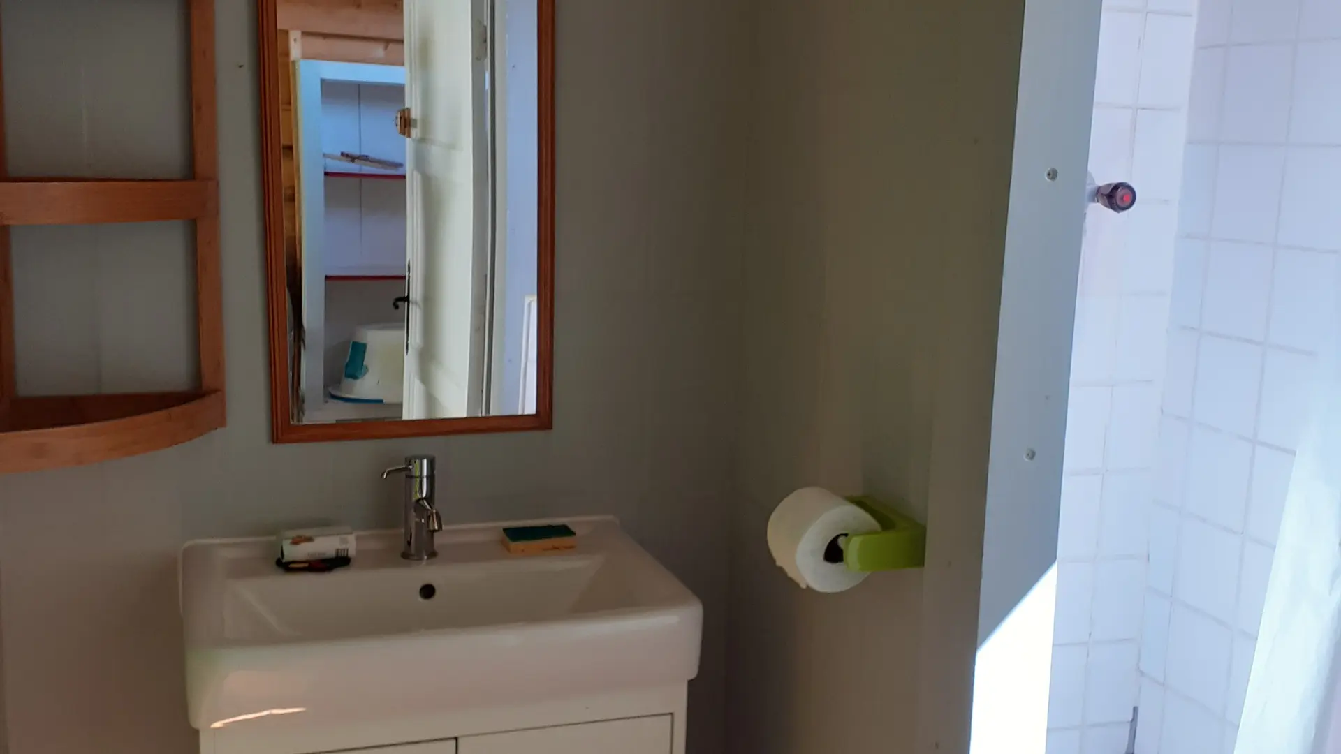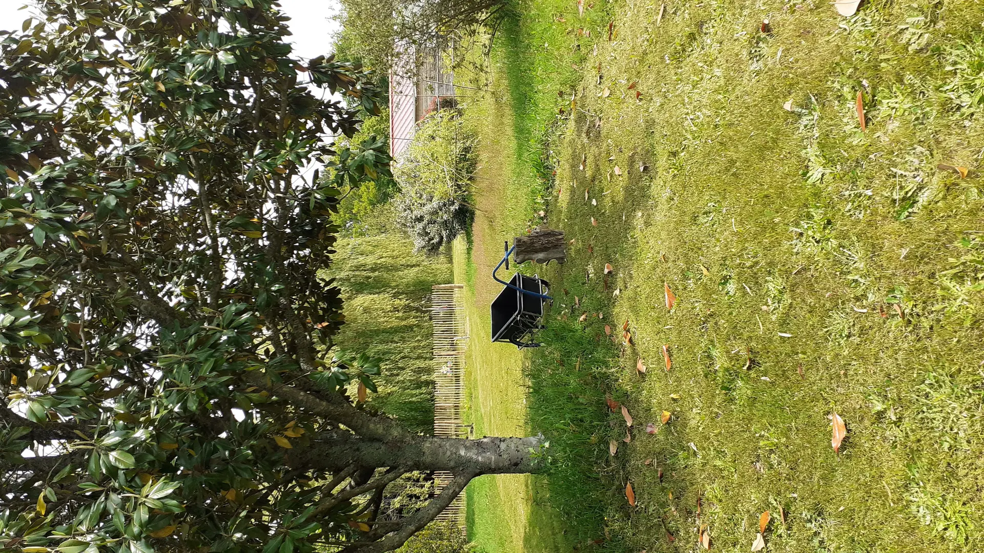 In einer ländlichen Umgebung, in ruhiger Lage, innerhalb des Anwesens, separates Häuschen mit ausgestatteter Terrasse (Tisch und Stühle für draußen, Liegestühle, BBQ, Sonnenschirm), geschlossener Garten, Blick auf die Wiesen und den Wald, Wohnraum mit Doppelbett, ausgestattete, separate Küche, Bad/WC, geschlossenes Vordach für Fahrräder oder Surfbretter.