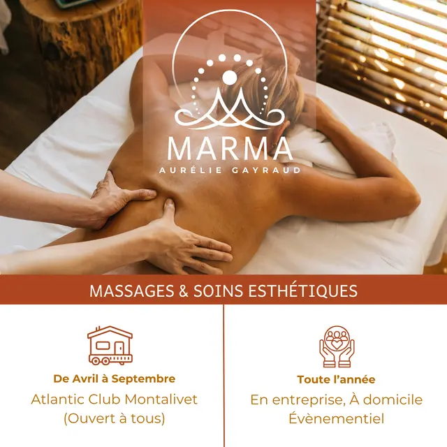 L’espace MARMA, au Camping ACM de Montalivet, vous accueille chaque saison d'été de Avril à Octobre, dans son cadre apaisant, idéal pour retrouver votre équilibre et votre éclat. Quelques surprises inédites viendront enrichir votre expérience bien-être…